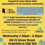 Training Opportunity Support and Learn about other organisations in our recovery community GRACE looks forward to welcoming Nadia a member and previous volunteer of GRACE to present Next Chapter Scotland …